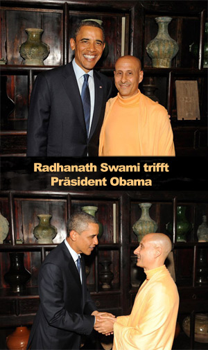 Am 13. Juni 2011 wurde Radhanath Swami zu einem Treffen mit dem Präsidenten der USA, Barack Obama, bei einer Veranstaltung in Miami, Florida, eingeladen. Der ISKCON-Sannyasi und -Guru nahm die Einladung im Namen seines geliebten spirituellen Meisters, A.C. Bhaktivedanta Swami Prabhupada, dankbar an. Das Treffen selbst hat er seinem geliebten Gottbruder, Bhakti Tirtha Swami (1950-2005), einem afro-amerikanischen ISKCON-Prediger, gewidmet. Der Präsident und der Swami hatten für ein paar Minuten ein sehr schönes und herzliches Gespräch.