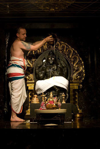 Jeden Morgen und Abend finden Tempelzeremonien statt und der Herr wird von den Priestern neu geschmückt