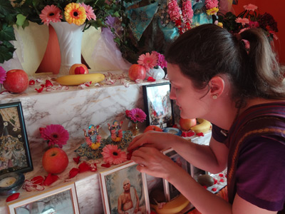 Rasa Viharini: Es kommt auf Liebe und auf die Bereitschaft, Verantwortung zu tragen, an, denn jeder, der einmal anfängt, Krishna als murti zu verehren, sollte niemals wieder damit aufhören. Und natürlich ist die Altargestaltenverehrung so anziehend, dass man davon nicht genug bekommen kann.