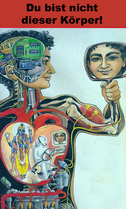 „Genau. Das Selbst gehört zur spirituellen Energie, sie ist ein kleiner Teil der großen spirituellen Seele. Genau wie eine Gitarrensaite Teil einer Gitarre ist. Wenn du diese Gitarrenseite herausreißt und hier auf den Bürgersteig schmeißt – was für einen Wert hat sie dann?“