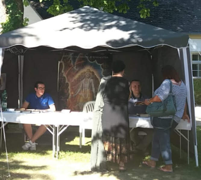 Viele Leute kamen zu uns und fragten interessiert, was es denn mit dieser “vedischen Kultur” auf sich hätte. Sie hätten bisher kaum etwas davon gehört. Darauf zeigten wir ihnen die Bilder in der Bhagavad-gita und schon nach wenigen Sekunden drehten sich unsere Gespräche über Themen wie Karma, Reinkarnation und ob Gott tatsächlich eine Person sein kann. Ein Doktoranwärter aus dem Iran nahm sogar mit Freuden eine arabisch übersetzte Bhagavad-gita für seine Universitätsbibliothek mit.