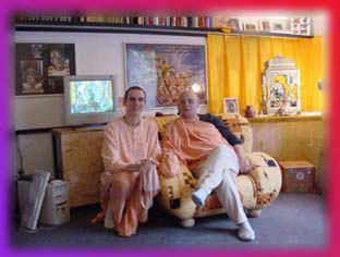 Paramshreya Dasa (r.) und Shivatma Dasa (l.) in ihrem ehemaligen Prediger-Büro, Garbsen 1999.