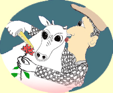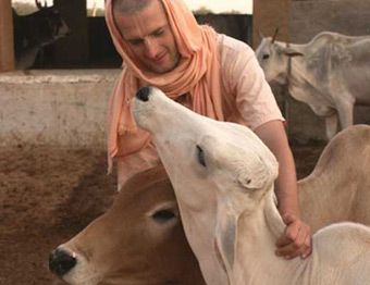 Bilder (www.careforcows.org): Die Hare-Krishna-Bewegung setzt sich für Tierschutz, insbesondere Kuhschutz ein (wie hier in Vrindavan, Indien). Dass die Mitglieder der ISKCON Vegetarier sind, versteht sich von selbst...