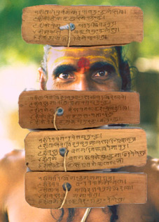 Wie beim "Glücksrad" aus Madurai schießen nun alle möglichen sogenannten Pa1mblatt-Bibliotheken aus dem Boden Indiens. Bei einem Besuch einer solchen Bibliothek ist als erstes ein vollständiges Formular mit genauen persönlichen Daten abzugeben (und ich brauch wohl auch nicht erwähnen, daß dort mit Dollars bezahlt werden muß!), und nach ca. mehreren Stunden wird dir ein altes Pa1mblatt gezeigt, das angeblich nun dein eigenes sein soll. Mit den angegebenen Daten und Fakten deines Vordruckes wurde schnell ein Horoskop "zusammengefrickelt", das augenscheinlich zu dir gehören soll. Aber im Grunde genommen existieren diese sehr alten Bibliotheken kaum noch, weil auch dort die Zeit und Mr. Kali ihr Unwesen treiben (sprich Zerstörung). Die ganze Geschichte ist also vielmehr bessere Astrologie, basierend auf vedischem Wissen. Sie kann jedoch kaum in die Praxis umgesetzt werden, da es die gelehrten Brahmanen (Pandits) fast nicht mehr gibt.