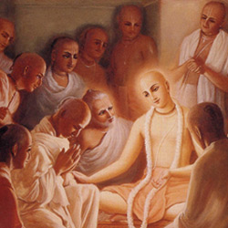 "Was das Thema des Guru betrifft, richtet sich der Augenmerk unserer Gesellschaft hauptsächlich auf den diksa-Guru . "Guru" ist immer mit diksa-Guru übersetzt worden und kaum etwas anderes wurde darunter verstanden. Wer aber sind jene großen Seelen, die uns mit dem Krsna-Bewusstsein bekannt gemacht haben? Welche Beziehung haben wir mit jenen Vaisnavas, die uns im hingebungsvollen Leben unterweisen? Welche Verpflichtung haben wir gegenüber unseren Eltern, Lehrern, sannyasis und Höhergestellten, die uns zurück zu Gott führen? Müssen wir nicht auch sie miteinbeziehen?