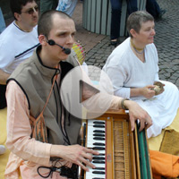 Das öffentliche Singen von Gottesnamen wird in allen spirituellen Schriften dieser Welt hervorgehoben. Eine kleine Gruppe aus Hannover hat sich dies Aufforderung zu Herzen genommen und sind seit einigen Wochen fast jeden Samstag auf dem Kröpcke (der Dreh- und Angelpunkt der Hannoveranischen Innenstadt) anzutreffen. Danach treffen sie sich meistens in einem Krishna-Tempel, der sich unter einem Dach befindet... [zum Video]